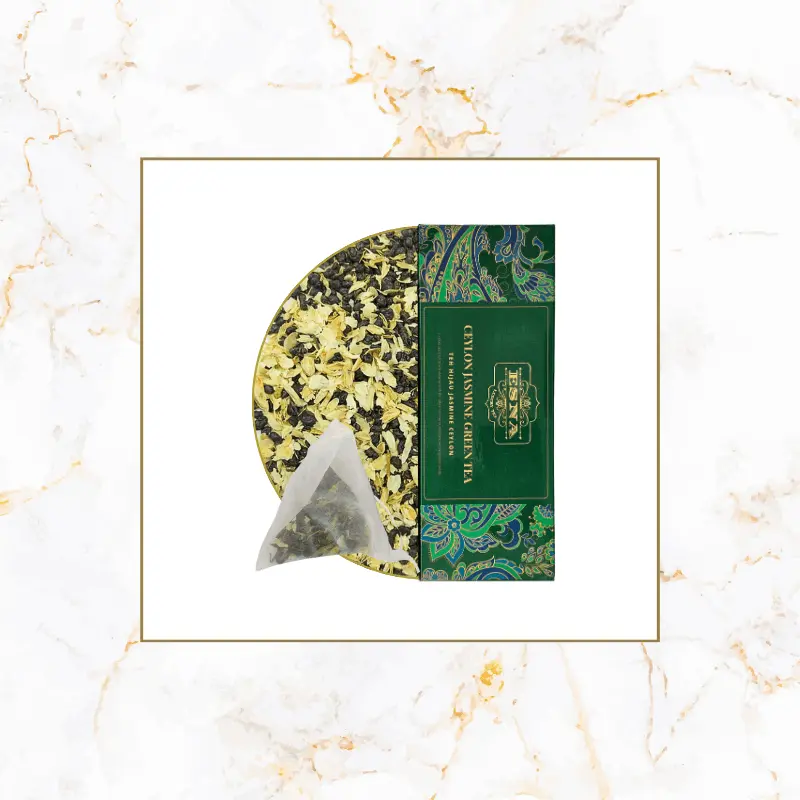 Elevate your tea experience with Esna’s Premium Ceylon Jasmine Green Tea, expertly crafted to offer a delicate blend of flavours and health benefits. Sourced from Sri Lanka, this unique tea combines whole Ceylon green tea leaves with a generous number of jasmine flowers, creating a lightly fragrant brew with a pleasant lightly greenish-yellow hue. Focusing on the flowers’ and tea leaves’ numerous health benefits, it is rich in polyphenols that contains the key benefits of antioxidants and anti-inflammatory properties. As a refreshing lightly fragrant tea, this blend helps to boost your mood, metabolism, and overall well-being.