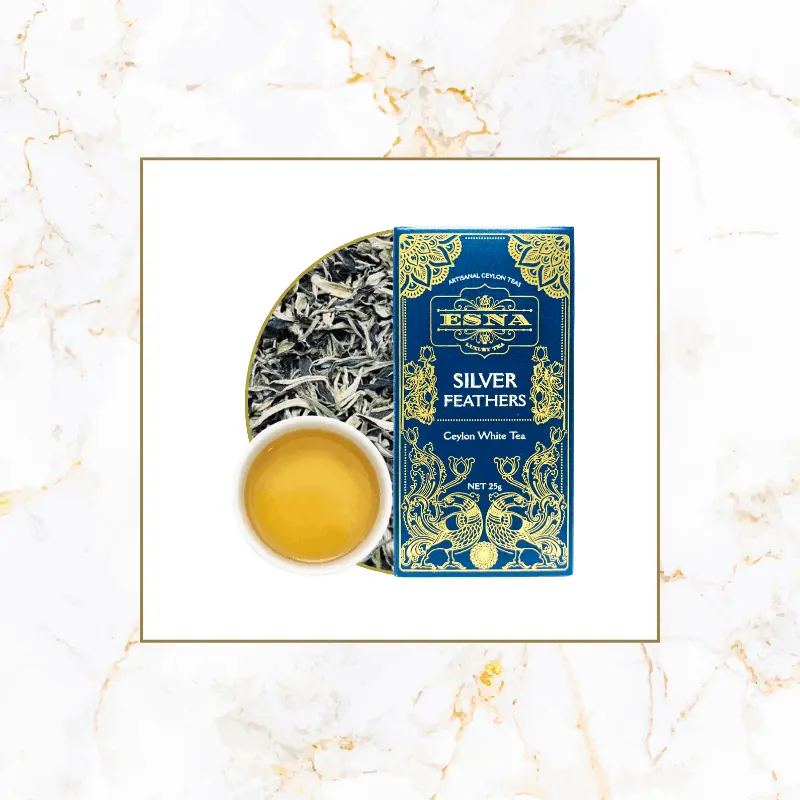 Indulge in the refined taste of ESNA Silver Feathers, a premium tea harvested from ancient tea plants in Sri Lanka’s renowned Dimbula region. These tea plants, introduced to Sri Lanka in the 1840s, are among the earliest brought to the island and represent a heritage of exquisite craftsmanship in tea-making. Silver Feathers is an exceptionally light and delicate tea with a captivating silvery-yellow hue. The brew features a floral aroma, complemented by delicate notes of sweetness, malt, and a subtle greenish finish. Its gentle strength makes it the perfect tea to enjoy as a serene conclusion to your day.